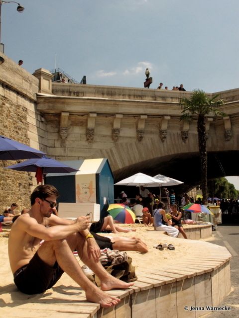 Can you believe this is in Paris? For all the city dwellers who can’t make it out of town to spend their summer on a beach, or for the travelers who got a hot deal on a Paris vacation only to find the town mostly deserted during the month of August, our fair city has created an annual tradition to help beat the heat: Paris Plages.