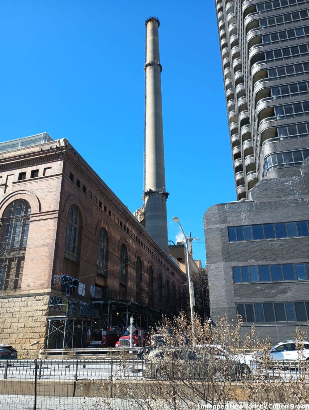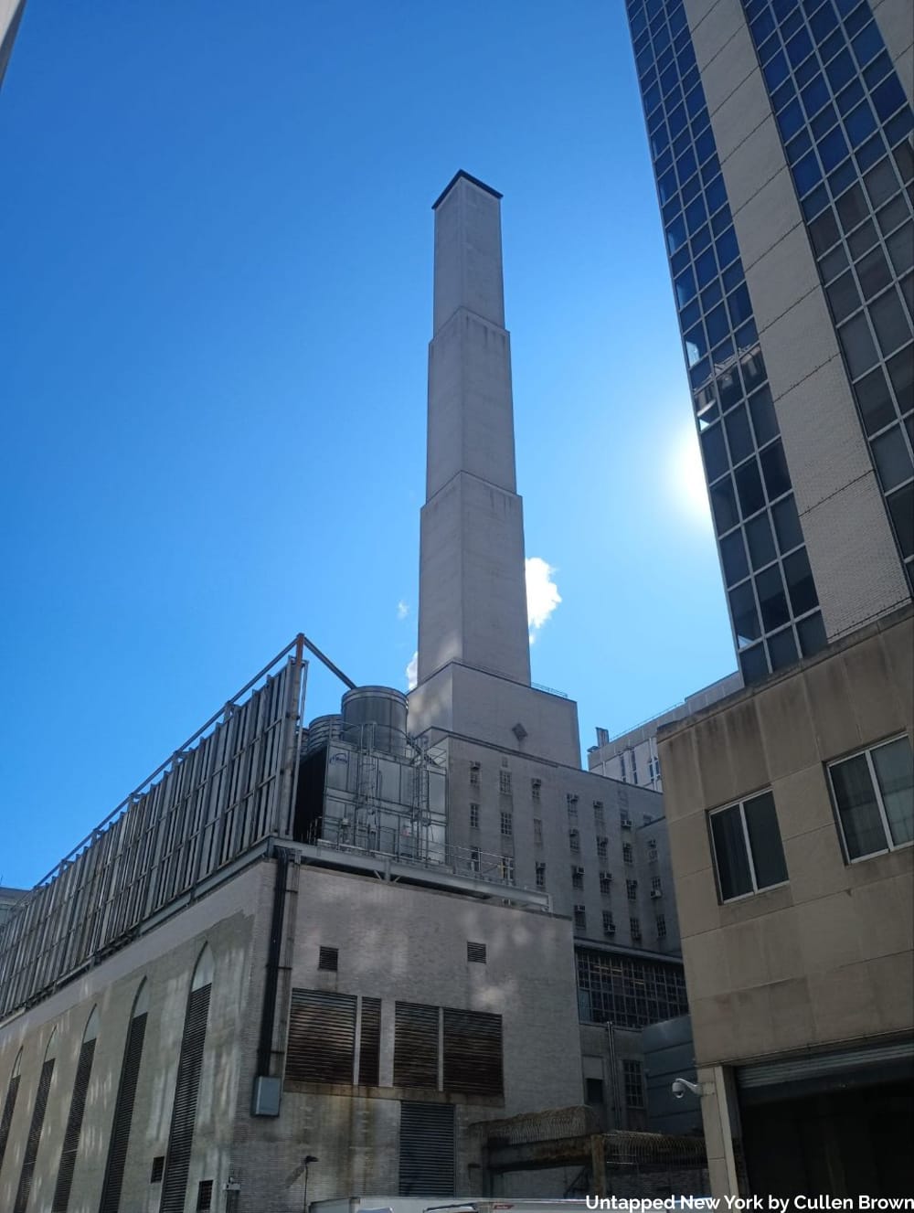 New York City is home to the largest district steam system in the world, with more customers served than the next nine systems combined. The Upper East Side is home to two of the Con Edison plants that generate that steam, and we will see the exterior of both of them–one underneath the Queensboro Bridge at East 60th St., and the other at East 74th St. Steam customers, including Grand Central Terminal, The Met, and Rockefeller Center, all buy steam from Con Edison.