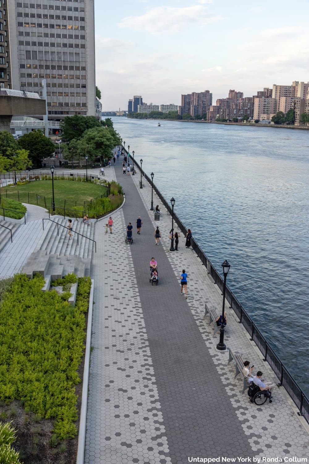 Along the way, with beautiful views of the East River and Roosevelt Island, guests will explore the newly minted East River Greenway and learn about its conception and construction.