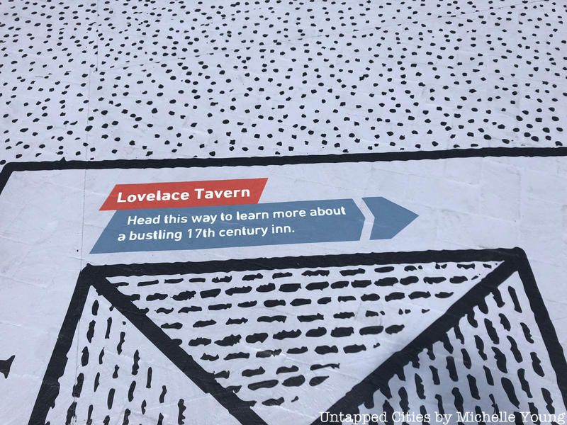 Fun things of note on the map besides Stadt Huys and Lovelace Tavern, where you can still see the archaeological excavation of the tavern through glass, are the now-lost Princess Street, the old synagogue (original the old mill of Dutch New Amsterdam, home to the congregation of the Sephardic Jews who arrived in 1654 from Spain and Portugal), and the old slips of Lower Manhattan.