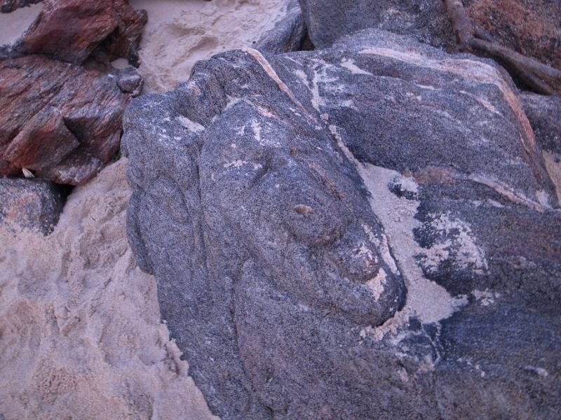 These sculptures weren’t done quickly over the course of a leisurely afternoon at the beach. They required multiple visits and lots of muscle. Capello explained that the stone found at the beach isn’t what a sculptor would typically use for carving. It’s much harder and more difficult to break away and chisel. “We were just doing it for ourselves to pass the time,” Capello said when Vita asked if there was any media coverage of the sculptures at the time of their creation. Oftentimes, people will sit on the rocks, completely unaware of the face peering up at them.