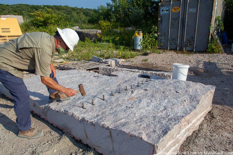 “Part of my mission is to really be knowledgeable about what specifically Stony Creek did, rather than making these great general statements,” Petit explains. For example, the granite base of the Statue of Liberty is often attributed to this quarry but it actually came from the Beattie’s Quarry in Guilford, which sat right on the border of Stony Creek. Beattie’s also supplied the granite foundations for the Brooklyn Bridge. But since Beattie’s is closed, Stony Creek supplied the granite for the ramps of the new Statue of Liberty Museum. The commission came about because of “the desire to link in with the base” of the Statue of Liberty, Petit said.