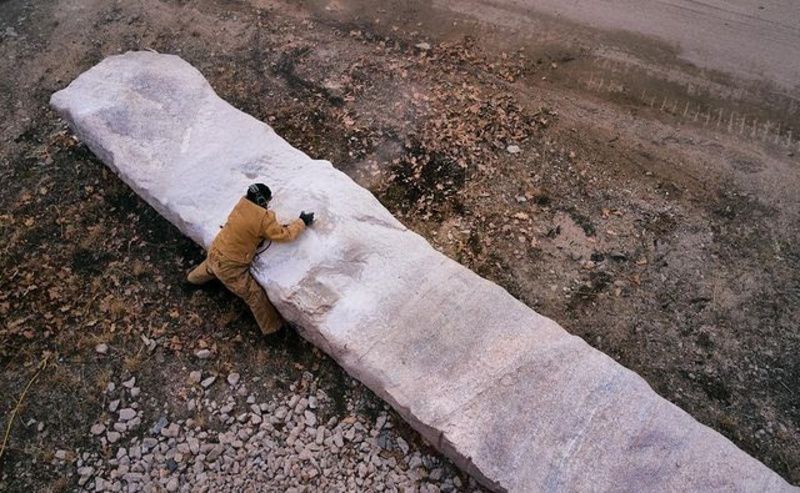 While the big slabs are now cut with top-of-the-line technology — a diamond impregnated wire, lubricated with wire and pulled to a tension that it can cleanly cut the granite — Stony Creek Quarry still uses all the methods historically available. That includes understanding the natural fractures in the rocks to identify where the rock will cleave easiest, using explosives, drills, sledgehammers, and more. “We’re still working with ancient technology as well as the most advanced,” Petit said.
