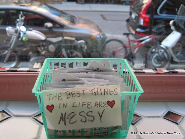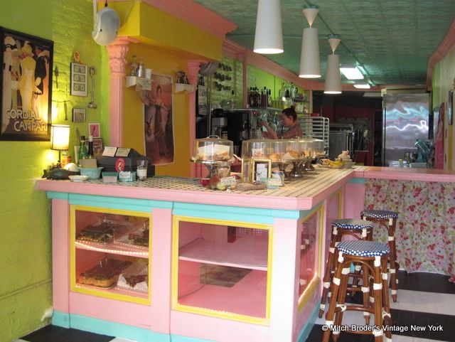Jane’s also done fashion modeling, which is where she took on the name of Danger, but her decor is less Witch’s Castle than it is Merry Old Land of Oz. Jane’s is a sunny place where you’re served baked goods on mix-and-match china. The baked goods are identified by Jane’s sunny hand-lettered labels.