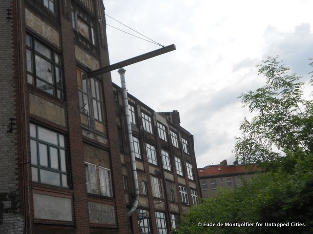 The site is rather well concealed, requiring some obstinate Google maps research and some other wandering by bike before finding it. It is located precisely between the Wiesenstraße–hence its nickname of Wiesenburg–and the wharfs of the Berliner small river called “Panke”.