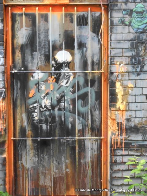 Between Wedding and Gesundbrunnen stations on the Ringbah (the Berliner inner loop line), an abandoned building full of graffiti is clearly visible from the train tracks. Despite the area’s abandonment, the site has become a haven for street artists featuring some remarkable pieces.