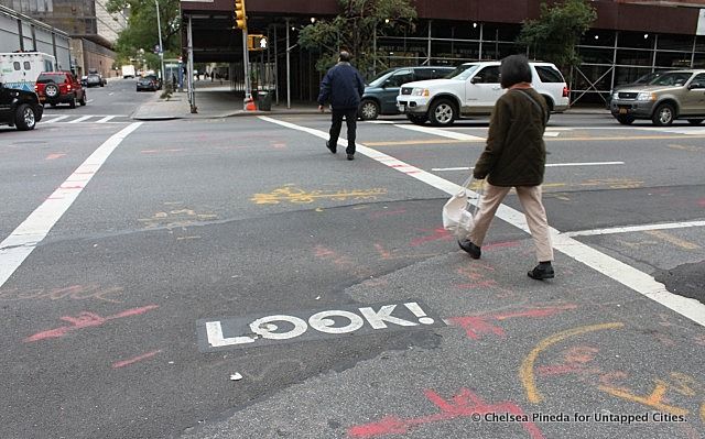 “Remember to look both ways before crossing the street!” was always a saying that was ingrained into our minds as little kids by our parents and teachers. However, in a fast-paced city with people constantly rushing while on their smartphones or iPods, it’s easy to disregard the golden rule of crossing the street. This is why Pentagram’s Michael Bierut worked with the New York City Department of Transportation to create the Look! campaign, which uses the simple symbol of the word “LOOK!” to remind pedestrians to be mindful of oncoming traffic before crossing the street. Bierut and his team plastered the five-character graphic on crosswalks as a signal, knowing that many people often glance down when crossing. And with 57 percent of last year’s traffic fatalities being people on foot, the pavement graphic could only help to lessen this number.