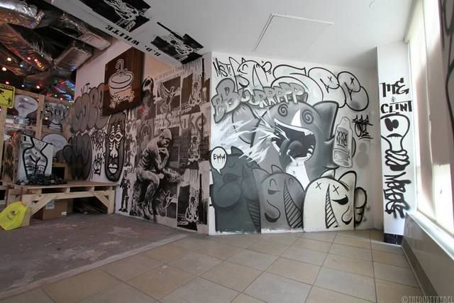 Love him or hate him, Hanksy knows how to throw one hell of a party. Last year we covered his event in the East Village (Surplus Candy), where he and a number of other New York City street artists took over an abandoned building, filling each room, stairwell and door with art. This past weekend, at a former Chase bank in the Lower East Side, Hanksy once again covered an entire space with his pop-culture based artwork filled with bad puns and artwork from an assortment of NYC street artists.