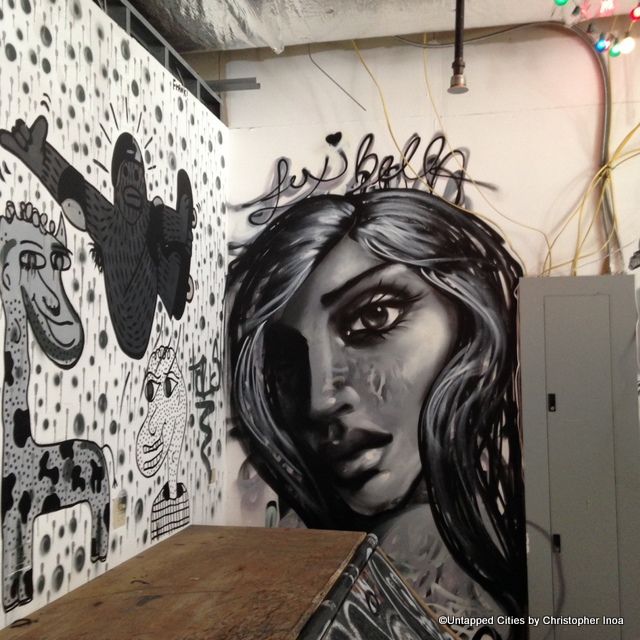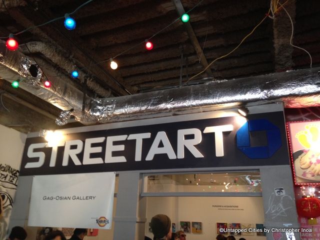 Inside the art space, was another art space. The Gag-Osian gallery was also hosting an event “Purgers and Acquisitions: Selling out Tomorrow’s Street Artists Today.” The small event was sponsored by Tostitos, where people could grab a handful of blue chip tortilla chips from a white bowl in the middle of the “gallery.” We’re sure it was a parody of the gallery scene here in NYC.