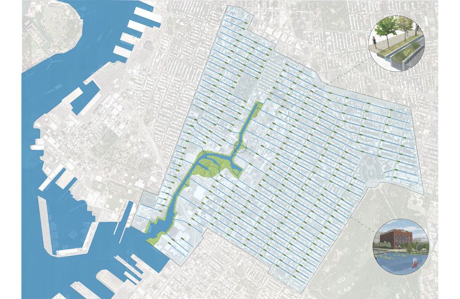 It was in that spirit that Ate Atema, a New York-based architect, has developed Street Creeks as a strategy that could help to better manage stormwater runoff in order to reduce CSOs. He initially focused on the Gowanus area of Brooklyn, where new development has increased public awareness about the putrid condition of the Gowanus Canal. That body of water, originally a creek buffeted by marshes, has been subject to decades of CSOs and industrial pollution, resulting in it being designated a Superfund site in 2010.