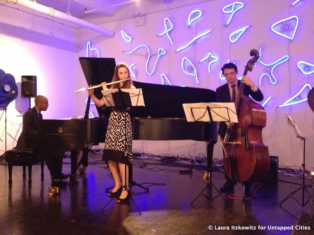 The jazz finale of the fourth annual Chelsea Music Festival lit up the first official night of summer, in more ways than one. The “Festival Finale: Music of the Metropolises—from London to Venice via New York,” was held at the Dillon Gallery on West 25th, where the Mexican artist Nacho Rodriguez Bach is currently exhibiting his work: “Psychedelic Patio,” a collection of neon light installations that suggest the different planes of consciousness evoked by musical composition.
