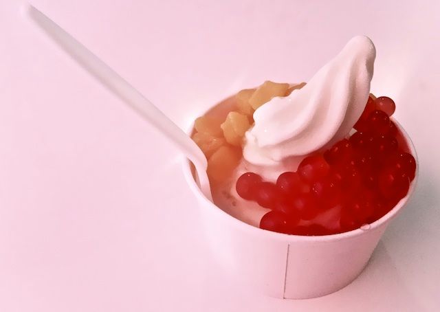 To keep it under five bucks, grab a small and top it with mango mochi and strawberry coating juice. The rice-based mochi is soft and chewy, a perfect compliment to the creamier frozen yogurt. On the other side of the equation is the “strawberry coating juice,” something I’ve never come across before. Though they look strikingly similar to fish roe, I decided to give them a cautious chance. Anyway, they ended up being the single most wonderful thing that’s ever happened to me. Each one is packed with tart strawberry juice, exploding when you bite down on them, filling your mouth (and truthfully, your day) with pure joy.