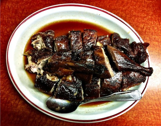 You’ll likely be one of just a few guests in the restaurant, and often the only table that will speak english at any point during the meal. The restaurant’s servers don thick blue butcher’s coats, solid evidence in the case for Hop Kee’s obsession with the quality of their menu. Start with a plate of half duck ($11.50) for a group of 2-4.