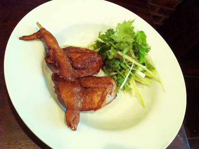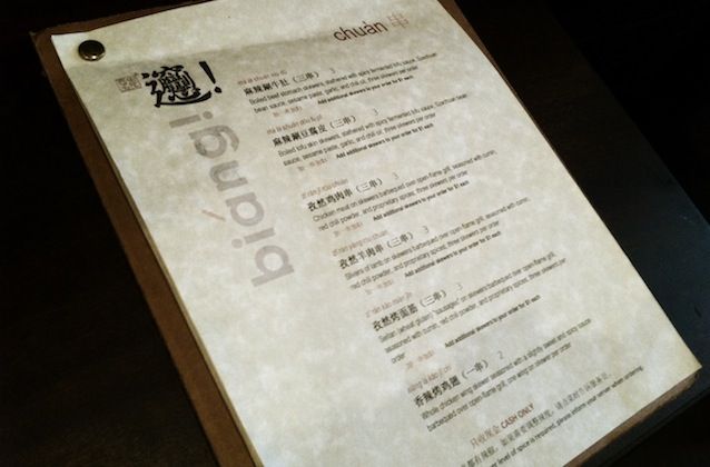It’s not all about skewers, though. Biáng’s nearly virgin Foursquare page includes a few tips from first movers, most begging users to try the quail ($6). Marinated and roasted moments before it arrives on your plate, you rest assured that these superbly flavored little birds gave their lives for a noble cause. It’s paired with simple salad of cilantro, celery, green peppers and scallions.