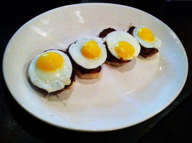 It was the final dish in our order, however, that really got us excited about the work Jason is doing at Biáng! Don’t miss your chance to try the Ä n chÃ… n dà n rà ²u cháng kăo mó pià n… don’t worry, we had no idea how to pronounce it, either. Just point at the thing. The dish features toasted slices of mantou (aka a steamed bun) piled high with homemade spicy pork sausage, and finally topped with a perfectly fried quail egg. You’ll get 3 for $5 (additional ones are $1.50 each). The result is one of the most exciting, inspired dish we’ve seen on our travels so far, and well worth your time.