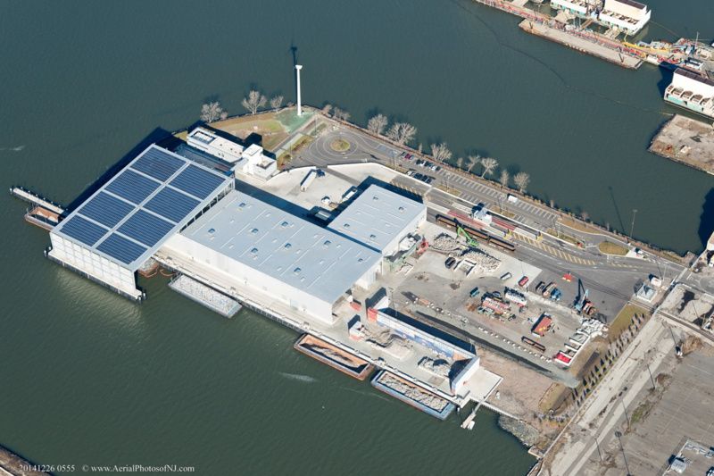 The shoreline in front of the Sunset Park Material Recovery Facility had to be dredged to allow for barge transportation, so to mitigate the effects, the City constructed three artificial reefs to create intertidal habitats for marine and bird life. Where the facility sits at the Marine Terminal used to be an NYPD impoundment lot.