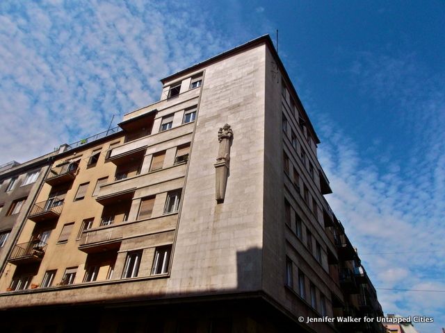 Bauhaus is not a style that many think of when Budapest comes up in conversation, but in the back streets of the VIII District, just behind the Víg Theatre you’ll find residential houses carrying the style. From the outside, you might catch a glimpse of a statue or frieze on the wall, but the neighborhood’s true secret treasures lie inside the residential buildings, hiding staircases curving up into infinity and functional rooms designed to store prams and avant-garde elevators.