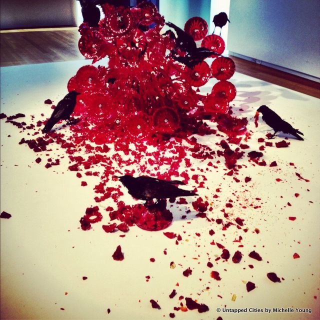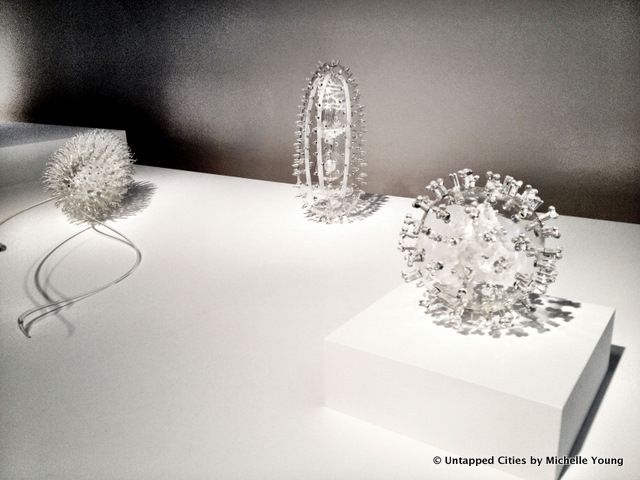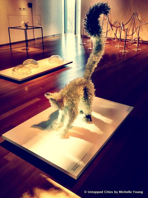 Equally incredible is Glasstress, another current exhibit at MAD, with work from the Venice Biennale. The Venetian Island of Murano has been a glassmaking center for over a millenium, but has become known more for its history than innovation. In an effort to produce a new manifesto for glass and art, Venetian glass artist Adrieno Berengo challenged artists from around the world to create “works that defied expectations of what Murano glass was.”
