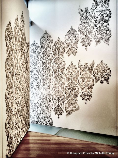 Catherine Bertola stenciled dust from the museum floor into a wallpaper-like design