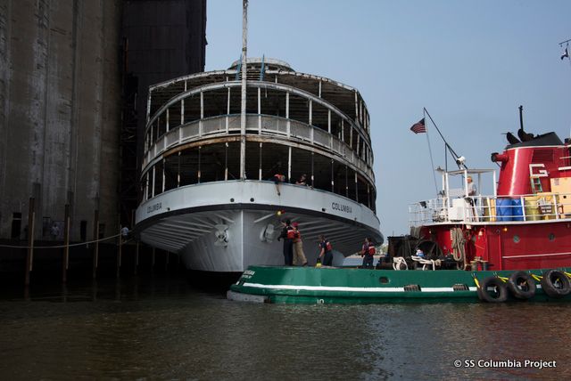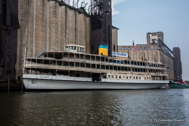 In September 2014, we reported on the S.S. Columbia Project, an initiative to bring America’s oldest surviving passenger steamship to New York. While it served its previous life in Detroit as one of the Boblo Boats, it will get new life reinvigorating the Hudson Valley‘s connection with its river and will serve as a floating mobile museum and cultural space along the Hudson River. Over the last year, the S.S. Columbia moved from Detroit to Toledo, where it wintered and had its hull repaired with 3,791 square feet of new steel welded below the waterline. On September 2nd, 2015 it arrived in New York State and will be docked at Silo City on the Buffalo River for the upcoming winter, before more rehabilitation is done to the boat next year.