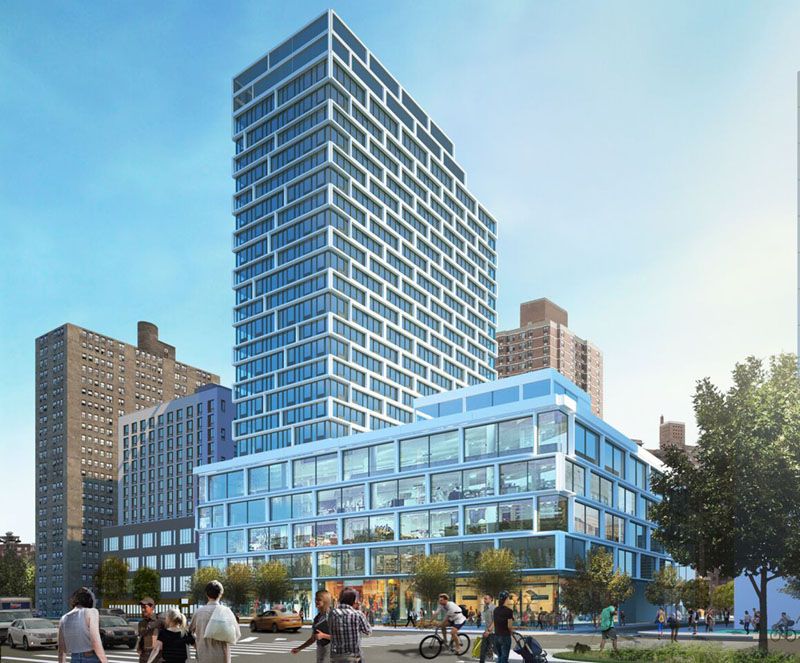 According to Curbed NY, the tower, designed by Handel Architects, will feature 10,000 square feet of retail on its ground floor, 175,000-square-feet of office space on floors two to five and 263 rental units — 121 of which will be affordable — on its higher floors. In addition, its cellar will hold one-third of the Market Line, a forthcoming market and beer hall with over 100 vendors that will be connected to Site 3 through an underground passage.