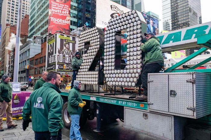 The numerals arrived on Wednesday aboard a flatbed truck and were placed in TSq Plaza for the public to view. In total, the four illuminated numerals of “2020” use 618 9-watt energy efficient LED bulbs. The numeral “2” contains 145 bulbs, and the “0” contains 164 bulbs. The number sign will shine bright below the glittering countdown ball on December 31st as millions around the world watch the ball drop.