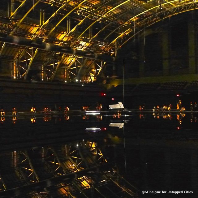 This ambitious project has a familiar engineering firm in Arup, who was the lead consultant on the new Fulton Center subway in lower Manhattan. It was Arup that had the task of figuring out how to effectively bring the water in, surrounding the pianos. The installation required that the 122,000 gallons of water, which would be occupying 33,000 square feet, would slowly flood the part of the room where Ms. Grimaud would be performing. By the end of her performance, about an hour, both the artist and her instruments would be as if floating on a pool with reflections from every angle.