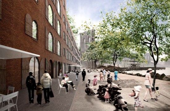 View the possibilities for DUMBO waterfront in the slideshow below, courtesy of Brooklyn Bridge Park, and check out more renderings of each team’s proposals here. The contributing development firms include Jamestown Properties (the firm behind Chelsea Market), Two Trees (the firm behind the controversial renovation of the Domino Sugar Factory in Williamsburg), Robert A. Levine, Acumen Capital Partners, and Midtown Equities. We’re crossing our fingers for Team Eight; we love their airy, modernized interiors that somehow manage to keep in line with the buildings’ original facades. We’re also fond of Team Nine’s rooftop gardens – but, of course, we have to leave it up to Brooklyn Bridge Park to decide.