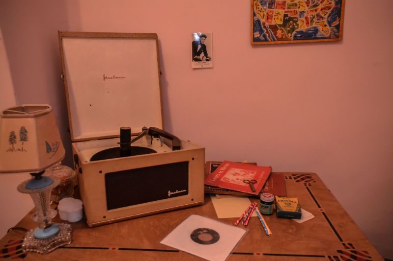 Recordings of Bella Epstein recalling her love for Paula Anka plays from her record player. Photo courtesy of The Tenement Museum.