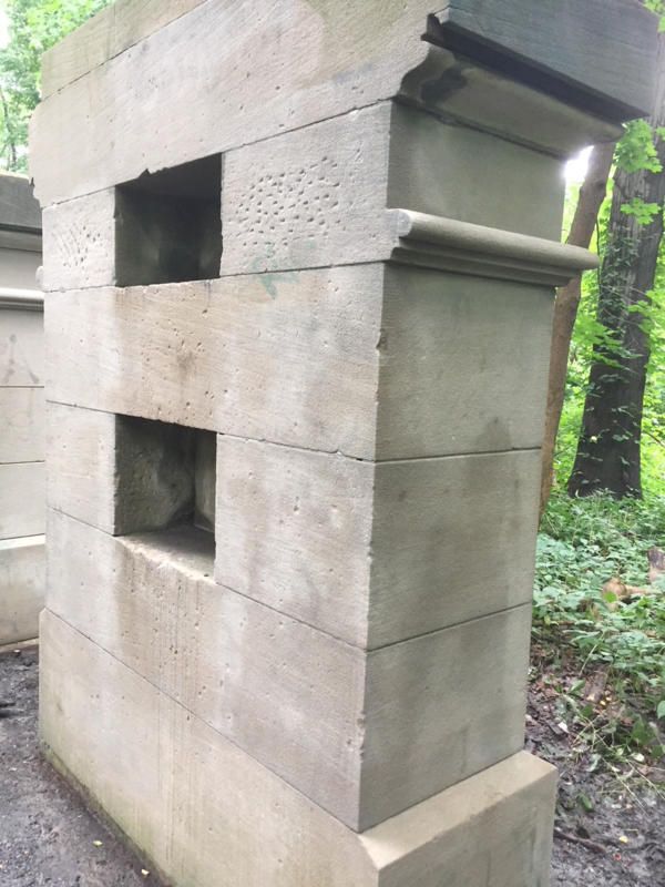 For decades, the pillars were covered in graffiti, deteriorated, and surrounded by overgrown forest. Now, thanks to funding from the Paul and Klara Porzelt Foundation, the Friends of Van Cortlandt Park were able to partner with the Municipal Art Society (MAS) for a Grand Central Stones Restoration Project. The goals of the project were to clean and restore the Grand Central Stones, improve landscaping, improve access and carry out long-term maintenance. The work was carried out by the Tatti Art Conservation. As the Friends of Van Cortlandt Park states, “By ‘restoring’ the stones, we had layers and layers of graffiti and paint Parks had used to cover the graffiti cleaned off of them. They are still weathering naturally.”