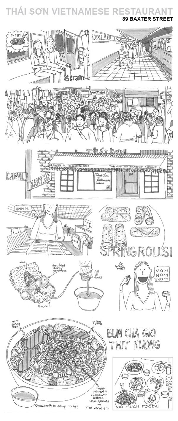 One of my favorite places to eat in Chinatown in a Vietnamese place, Thai Son, on Baxter Street. My boyfriend doesn’t live in NYC anymore so quick Saturday lunch trips aren’t as frequent as they used to be. Now I find myself drooling just thinking about their fried pork spring rolls, #24 on the menu (i think), and noodles, #49. The rice vermicelli noodles are so light and are served at room temperature. The mint, cucumbers, lettuce, and bean sprouts mixed in are so refreshing. I’ve given up asking for them to leave off the peanuts, they always seem to forget, oh well I learned to love them.