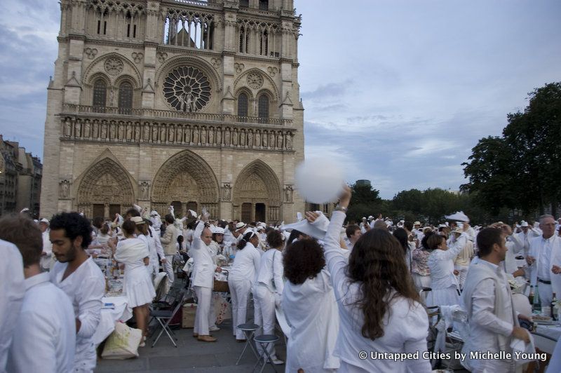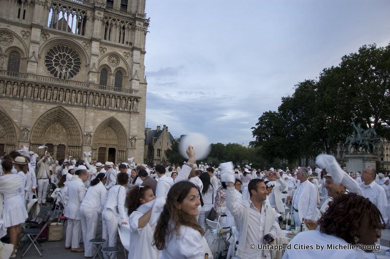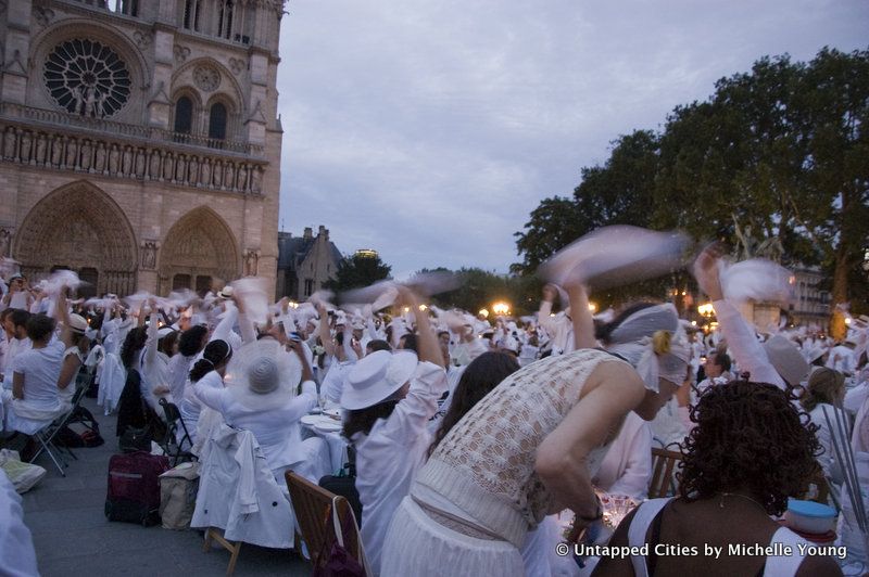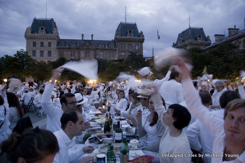 [I’m often asked how to get an invitation to the Paris Dîner en Blanc and I have some very special people to thank for welcoming me into this event. The Paris dinner is too large now to open up, but I recommend those interested to check out the dinners in other cities run by the same organization where a public sign-up process is available online.]