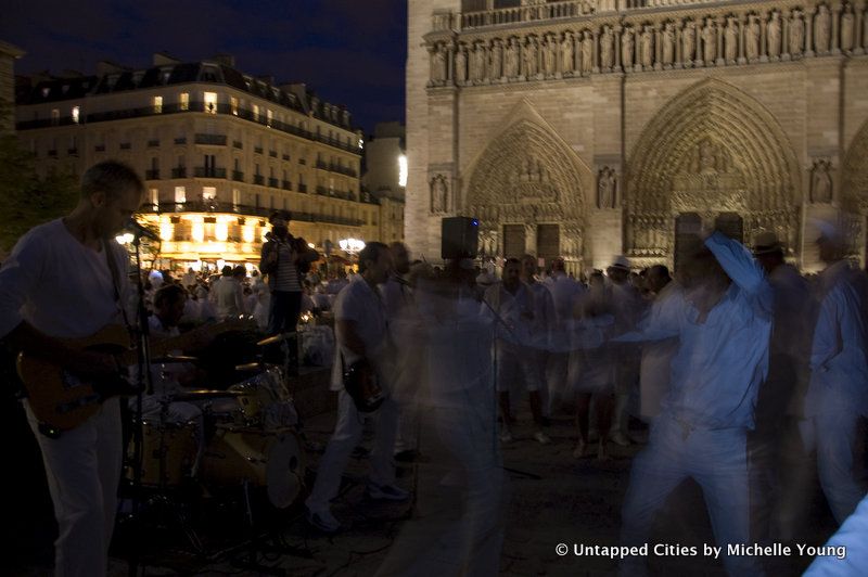 The most striking thing about the 2012 Dîner en Blanc was its marked shift into modernity–retaining the traditions but embracing the new. When two dance parties broke out to live bands playing rock and pop songs, everyone young and old began to throw down.