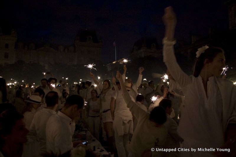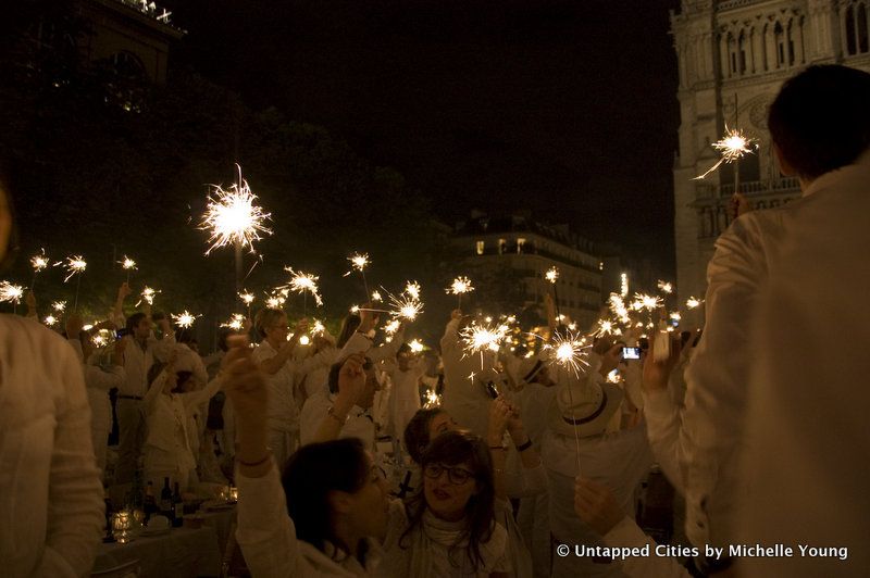 This year was a particularly interesting for me as I had been followed all day, reality TV style, for an officially sanctioned documentary about the Dîner en Blanc. When asked how it was this time compared to previous years, all I could muster at the late hour was that it was as breathtaking as always. There is no other city as beautiful as Paris on the evening of the Dîner en Blanc. But the magic has always been about the spontaneity and the camaraderie amongst the attendees, more so than the food, the fashion or the décor. And at 11pm when all the sparklers are lit, we are all reminded of how fortunate we are to be in such a spectacular event, created with no purpose other than to share in a moment together. I hope these photographs convey this spirit.