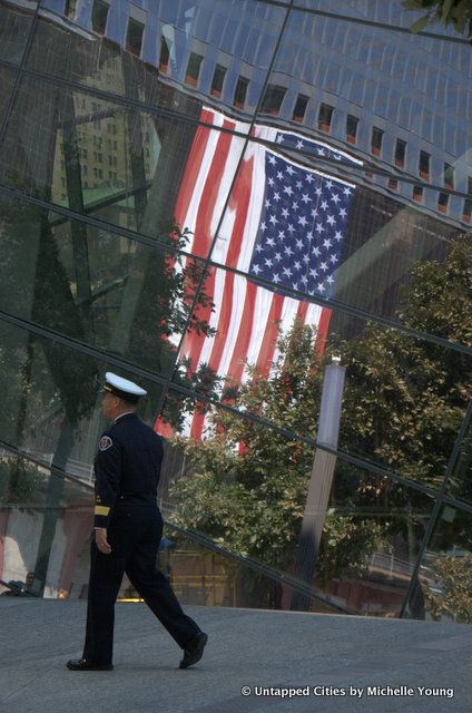 And like what great architecture should do, the memorial created new bonds between strangers. By chance we met Barbara, whose husband Ronald was head of security at the World Trade Center. He was able to call her before the tower fell, saying he was coming home. But he never made it–the tower fell as he was assisting a woman. Barbara carries that dual weight of loss and acceptance–at some point, she told us, you realize “that it really is just fate.” We discovered that her grandchildren attend the same school I did growing up near Stony Brook, Long Island. It was certainly fate for her and I to meet today. And in our thirty minute conversation we shared stories, spoke of patriotism and recalled that one terrible day, and of course, the memory of her husband. We also spoke of the wonderful Helmets to Hardhats program for injured veterans who were given the opportunity to help build the memorial.