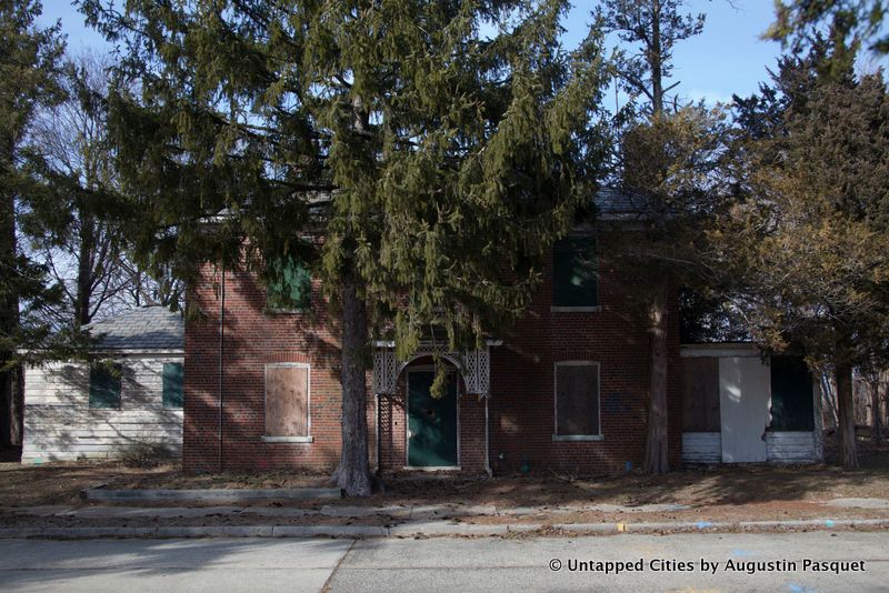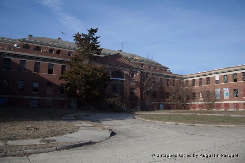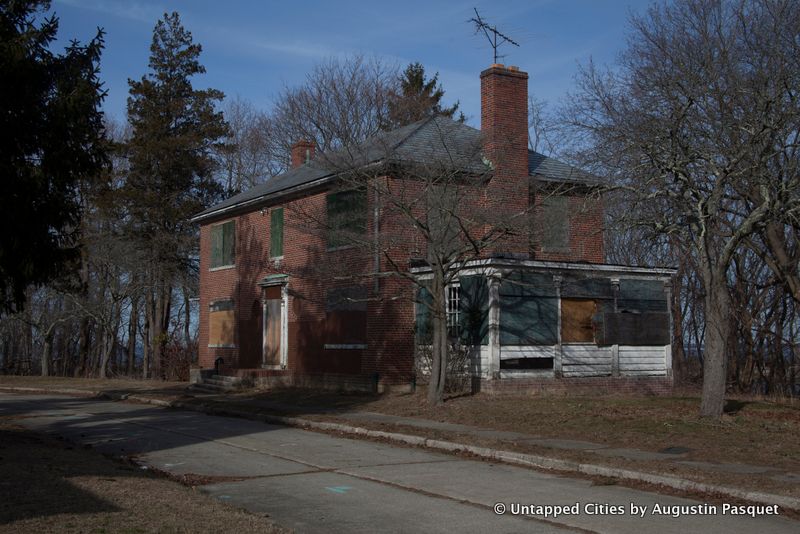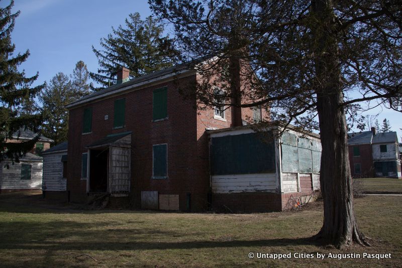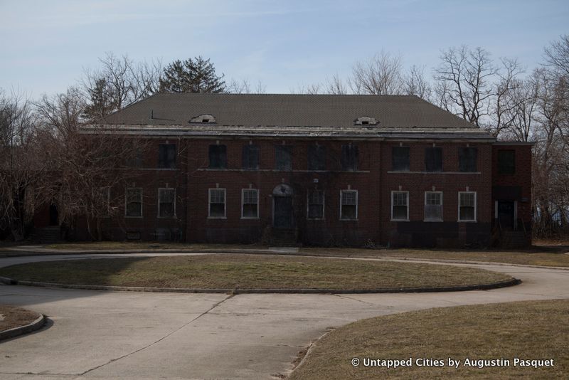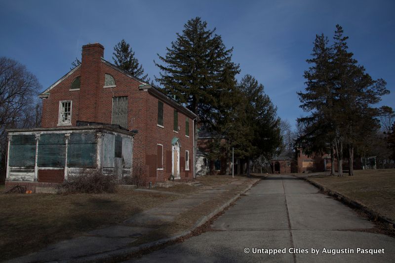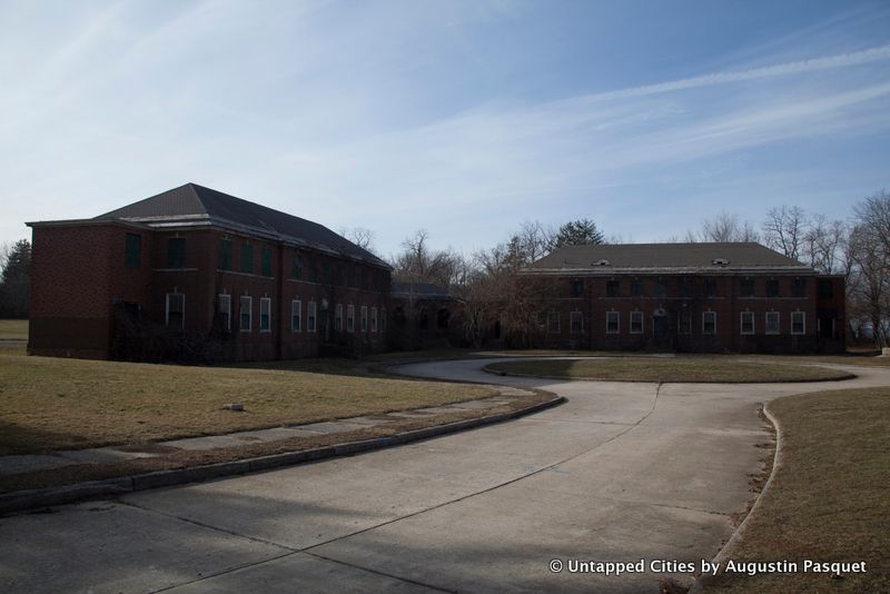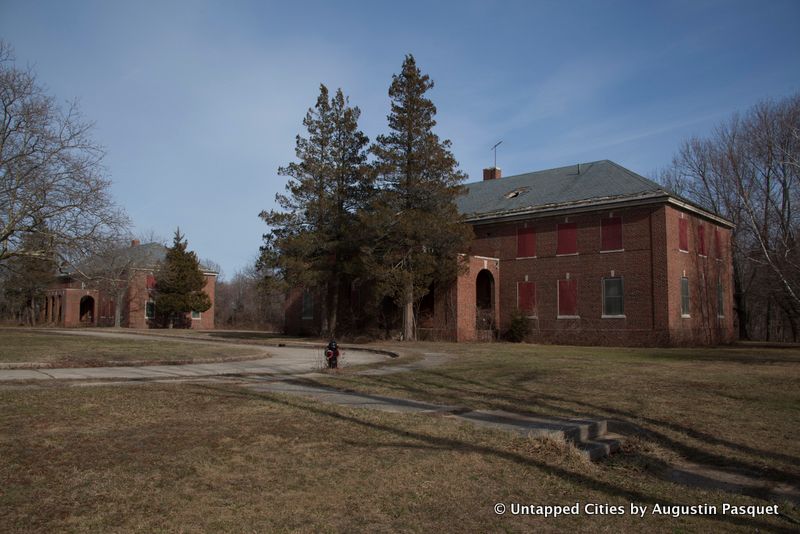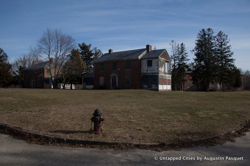 18 or 19 buildings were demolished in 2013 at a cost of $14 million and more will come down this month. What remains sit amidst rolling hills with an expansive view of the Nissequogue River in the back of the property. The physicians and other staff lived here and stand-alone Georgian homes were built in a suburban setting along curved roads lined with street lamps.