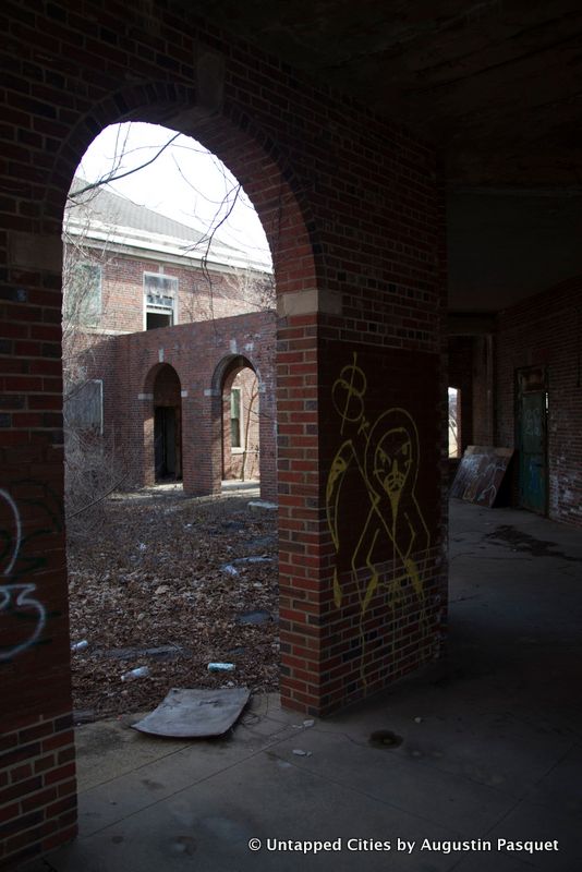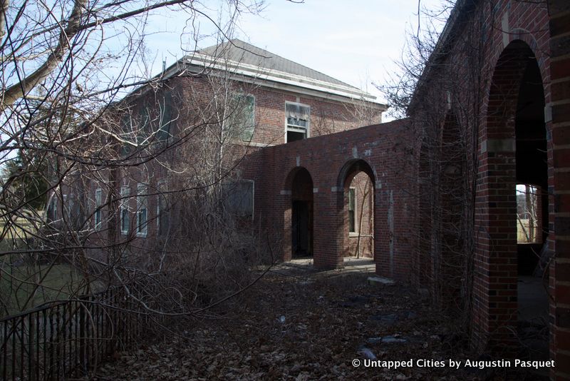 The colonnaded brick buildings, seen below, were arranged in a square and housed nursing supervisors and their families.