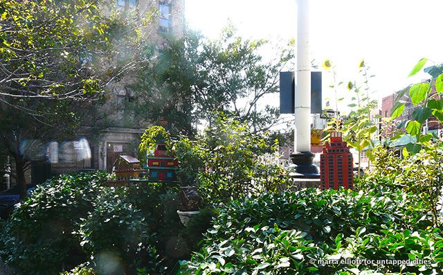You can find McCarthy Square, a small but wonderfully maintained traffic triangle, where 7th Avenue, Charles Street, and Waverly Place intersect in the West Village. Beside a dedication to Joseph McCarthy, killed in World War II and a flagpole from the 1939 World’s Fair in Queens are a series of hand-crafted birdhouses.