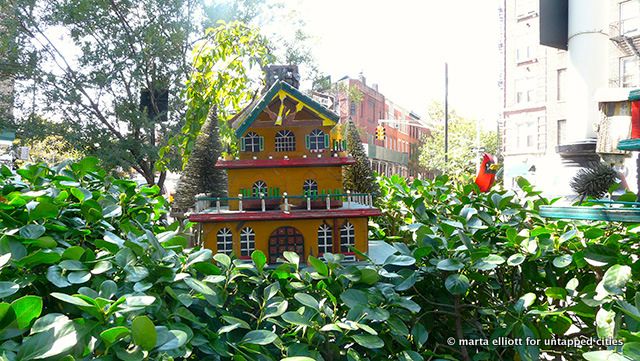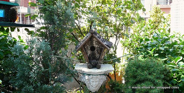A small sign assigns this work to Vincent Mele. Although he remains somewhat of a mystery, this “local handyman” has given the birds of the West Village some first class homes.