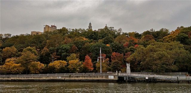 As we trolled through the no wake zone of the Harlem River, Mr. Platt pointed towards Columbia University’s playing fields and a cliff that children are wont to jump off of in the warm summer months. The beautiful fall foliage helped to transport us out of Manhattan once again. We passed the Cloisters and were reminded of just how much the Rockefellers contributed to Manhattan’s glory both now and in time past.