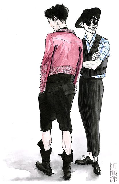Wow. I wish I had, but I’ll settle for having drawn them at all. A pair of cheerful fellas who managed to make studded leather and a clergyman hat look summery definitely deserve a mention on the Art of Style. They got their waffles and wandered off to break hearts elsewhere, but their memory will live on in my sketchbook, as does the stain from my waffle’s speculoos topping. (Worth it.)