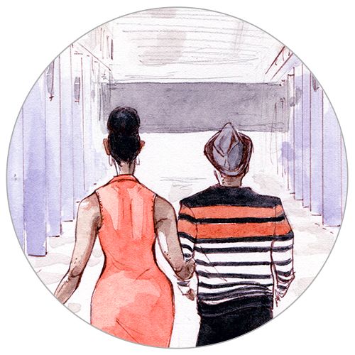 When I’m standing in a crowded space, I like making visual connections between people who are wearing the same color, or a similar outfit. Sometimes I’ll look at two people who are next to each other and figure out which elements of their outfits are the most similar. There’s always something, even if one has to shift the interpretation from the visual to the conceptual end of things.