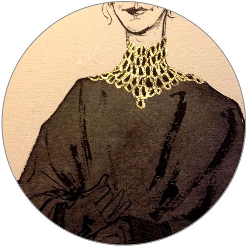 Here’s a closer look at the metallic ink used for the detailing on the collar, as well as this fancy toned paper.