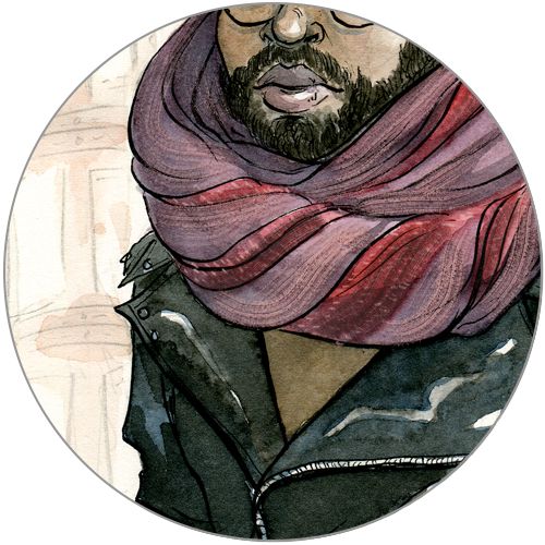 Last weekend, I spotted a fellow realist while wandering around in Prospect Heights. The temperature was hovering around fifty degrees, but this guy had twisted his scarf into a doughnut of warmth around his neck. A knit hat and autumn-appropriate leather jacket completed the puzzle, though he did have an extra layer of warmth that’s out of my reach. I’ve always been jealous of beard-havers for their ability to grow sweaters on their faces.