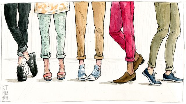 Rolled-up pant legs are an excellent way to show off your shoes, which is very exciting after a winter of Uggs and snow-stompers and an early spring sloshing through puddles with Wellingtons. Also, something about cuffs evokes a sort of puckish charm—I think it’s because everyone looks faintly ridiculous, like we’re all preparing for a flood or about to hop on our CitiBikes and coast away. Feeling wind on my ankles triggers some kind of impulse in my brain to play hooky from work in order to sit in the park all afternoon. How can you possibly be serious about anything when the weather is nice and your pants are rolled halfway up your shins?