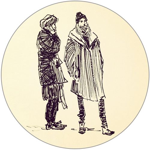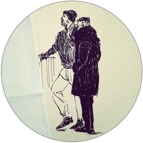 Of the many coffee shops we visited, Gildas Rum was the prettiest. Opulent velvet-upholstered armchairs and couches provided seating, chandelier lamps hung from the ceiling, and candles flickered on every table. Coffee and tea was served in giant but delicate-looking cups with saucers. We didn’t stay for very long due to the business and the lack of WiFi (it’s hard and stressful to go a whole day without checking your email and posting your travel photos on Instagram!), but it was enough to scope the place out and mentally mark a few people to immortalize on paper later. I thought this guy fit in with the decor of the place really well—the dapper practicality of a double-breasted coat with fur trim on top of… was he even wearing a shirt underneath? Oh, Sweden.