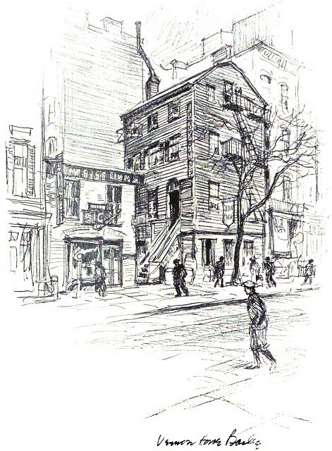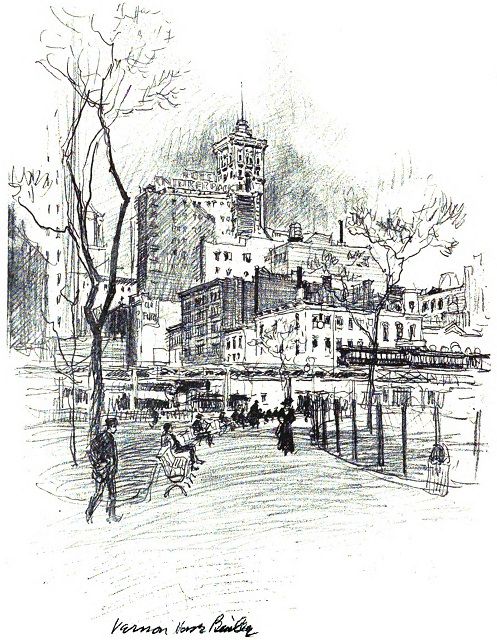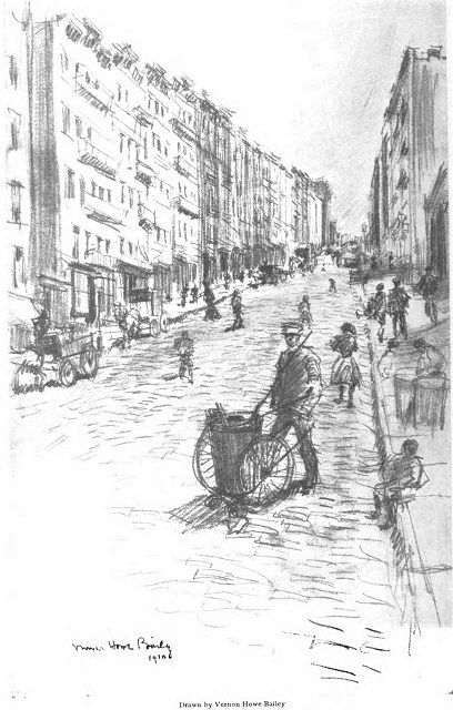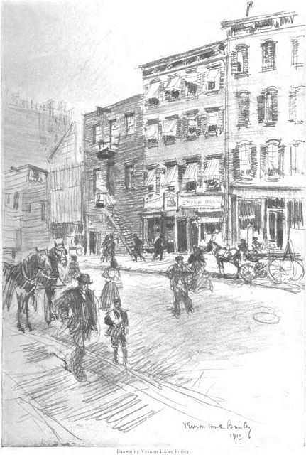 Here are fifteen drawings by Bailey, published from 1904 to 1916. They appear roughly in geographic order, moving up Manhattan from south to north.
