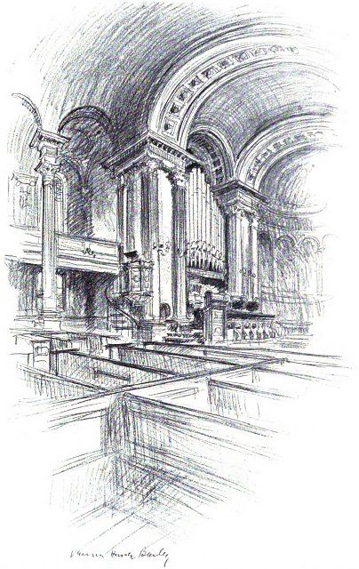 St. John’s Chapel was an Episcopalian church on Varick Street dating from about 1807. By the early 1900s, the once posh residential area was industrial and the City was planning to widen Varick Street. Despite a campaign to save the historic and much loved building, it was torn down two years after the publication of this drawing.