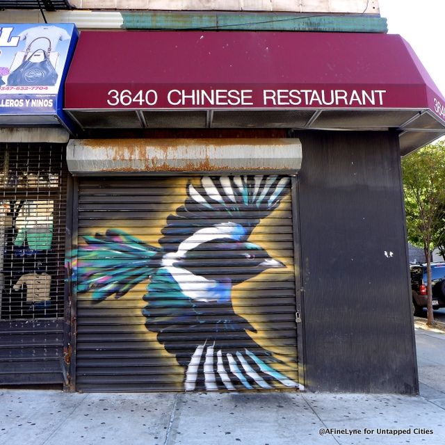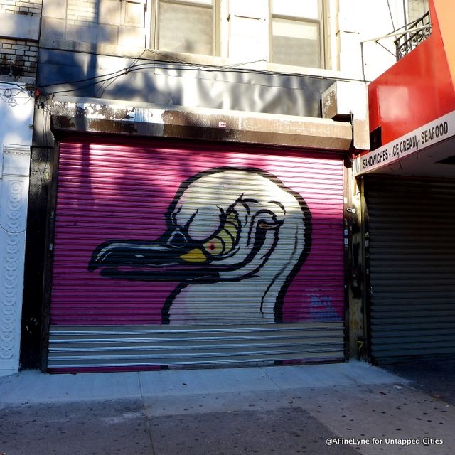 The Tundra Swan (below) is located across the street at 3631 Broadway. The mural is painted by artist Boy Kong, who we know from his work with the L.I.S.A. Project in Little Italy.