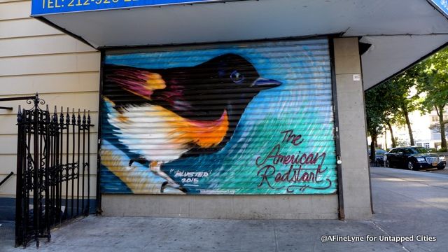 The American Redstart, painted by James Alicea, is located at 3612 Broadway at 149th Street. Mr. Alicea, also known as BlusterOne, has co-founded the community art hub 596ArtistUnion.
